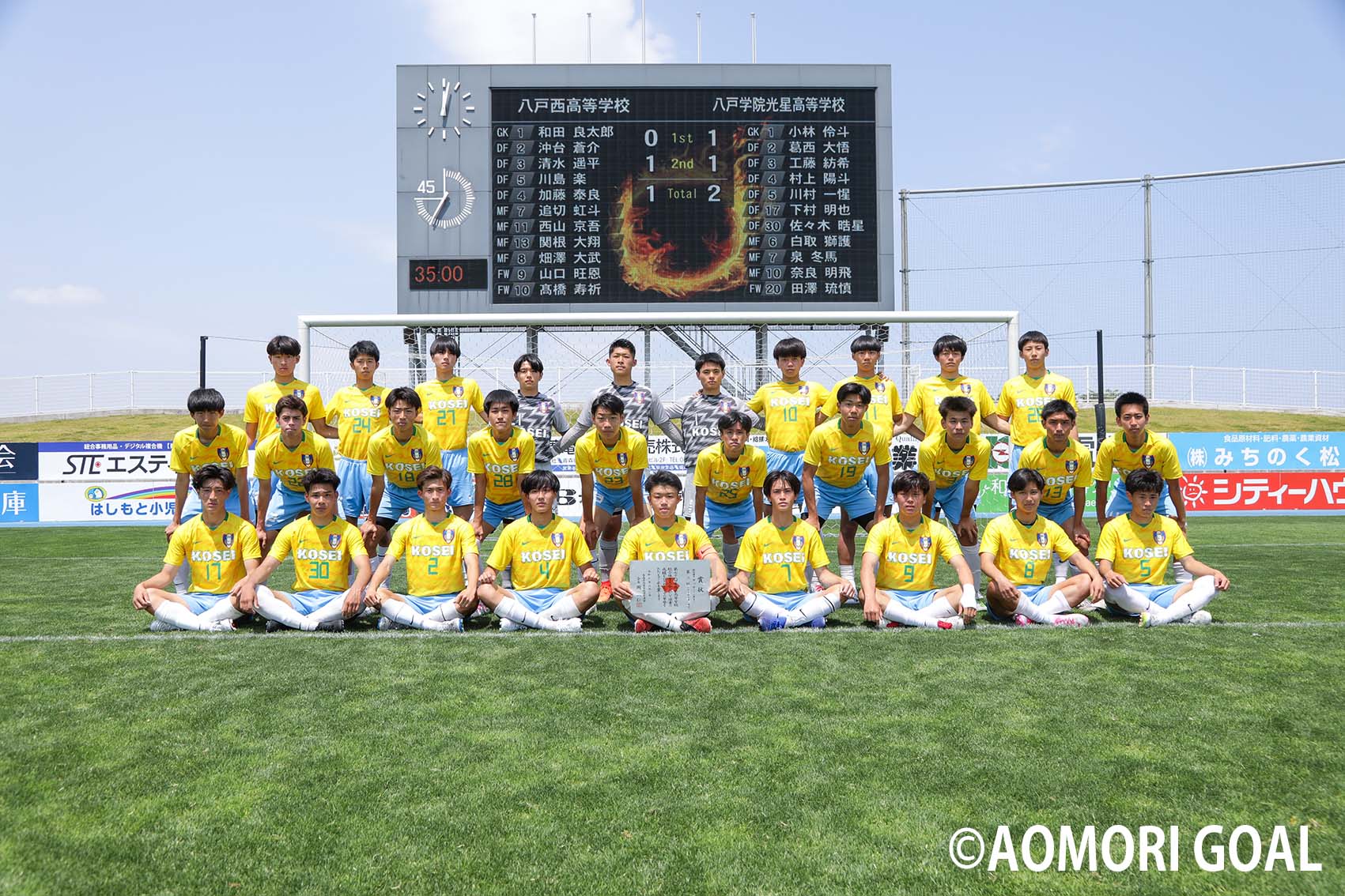 昨年は悔しいベスト4に終わった八戸学院光星高校は、準決勝で八戸学院野辺地西高校との系列校対決に敗れ、またしても3位決定戦を戦うことになった。それでも、八戸西高校との試合では、同点に追いつかれるものの、試合終盤にFW㉚佐々木晧星のこの日2点目となるゴールで勝ち越しに成功し、2ー1で勝利した。