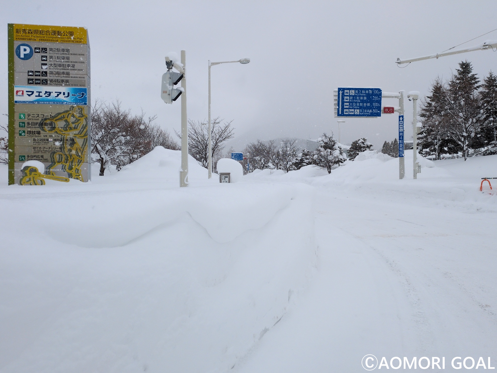 この冬も大雪に見舞われた青森市。新青森県総合運動公園エリアも深い雪に覆われている。2月から温暖な高知県でのキャンプが始まるまでの数日間、選手たちは体育館で体を動かす。