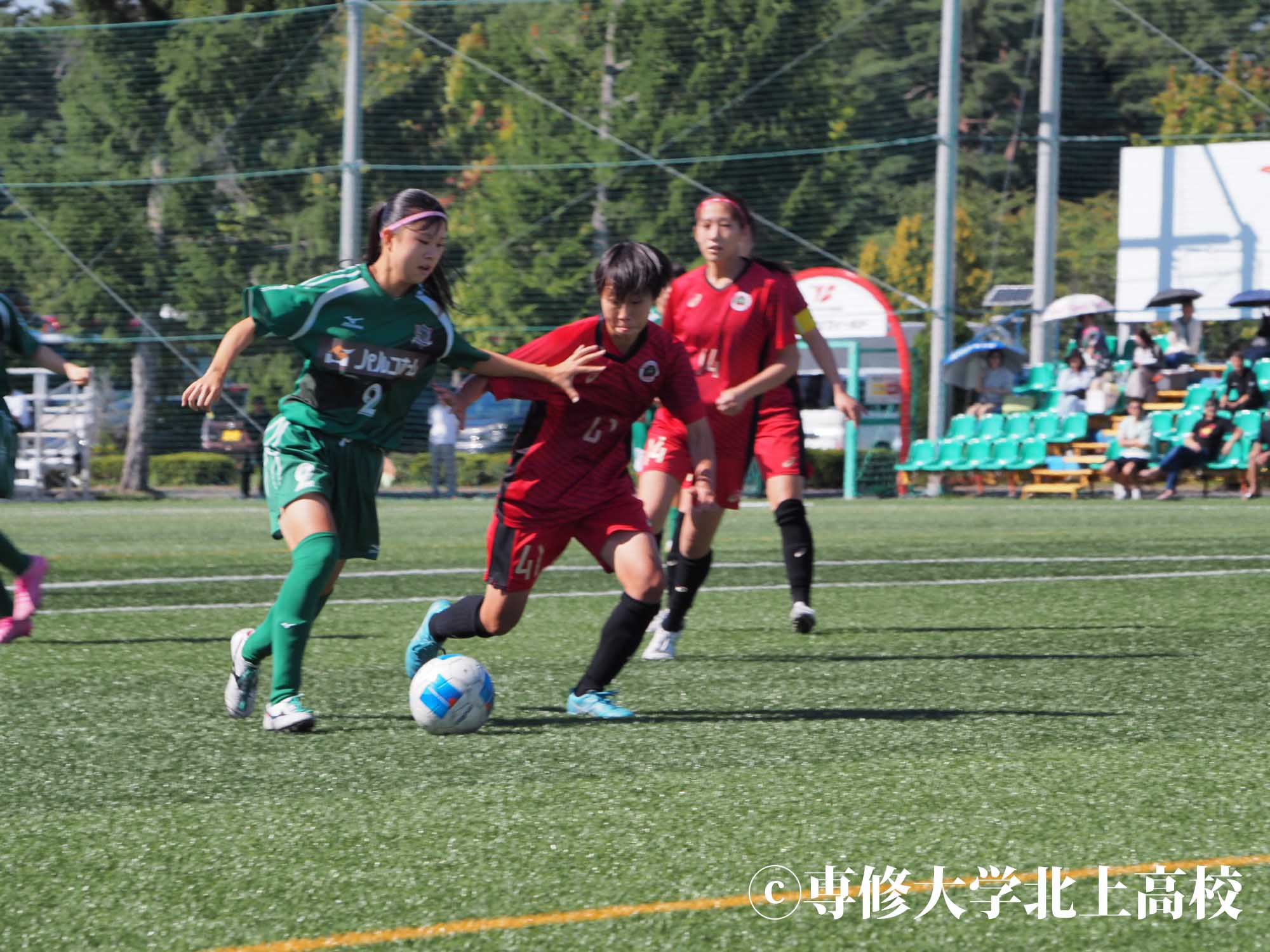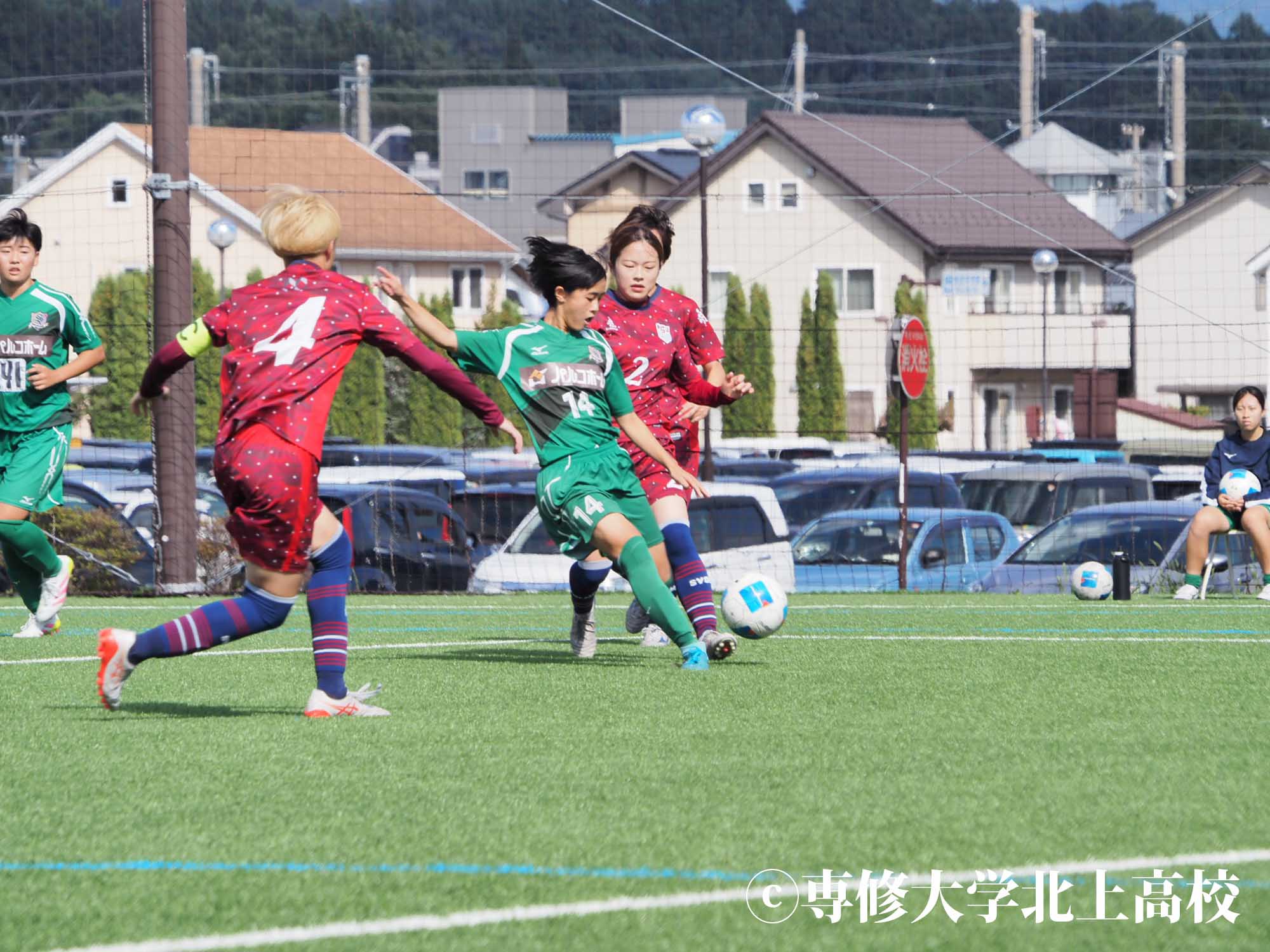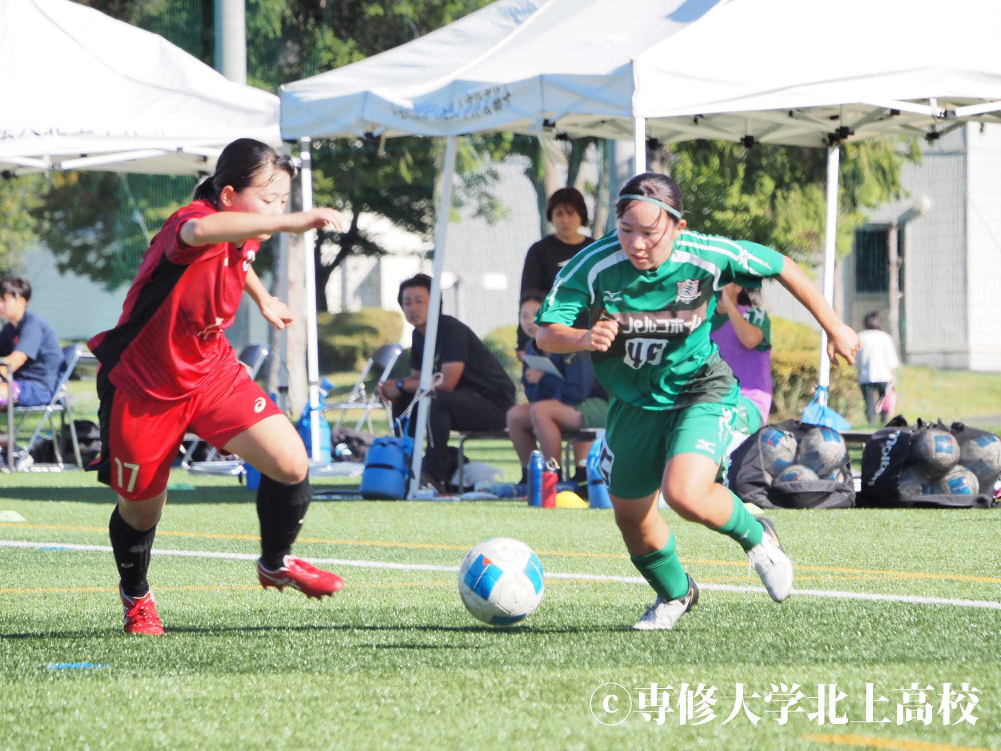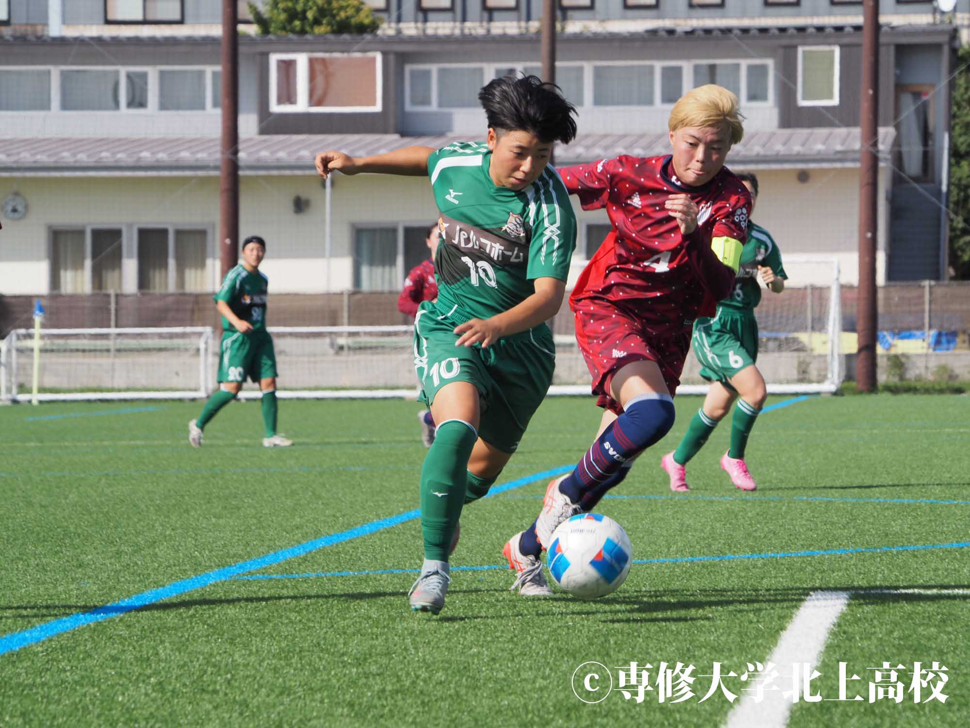 高鹿 今大会は、チームとしてはベスト4という目標でやっていましたが、個人としては日本一を目指して大会に臨みました。負けたら終わりで、とても緊張したんですけど、チームの分析のおかげで相手の弱みをついて得点を決めることができたので、1回戦で勝って安心しました。2回戦は初戦より緊張はなかったですが、ちょっと天然芝でふかふかしていて、自分は足をつりやすかったので「大丈夫かな」という不安もありながら試合に臨みました。試合をやってみたらなかなか自分たちの守備がはまらなくて、焦る気持ちが多かったです。自分も決定打を外して悔しい思いをしながら後半に臨んで、前半のハーフタイムでは足をつらない対策をたくさんしたんですけど、後半では最初の方から足がつりそうになって。泣きそうになりながら、これが最後になったら悔しい思いしか残らなそうだなと思ったので頑張りましたが、結局交代してしまいました。でも、あと少しで勝利というところで1点決められて、PKでも負けてしまって。PKでは、蹴られることがすごいなとその時本当に思いました。